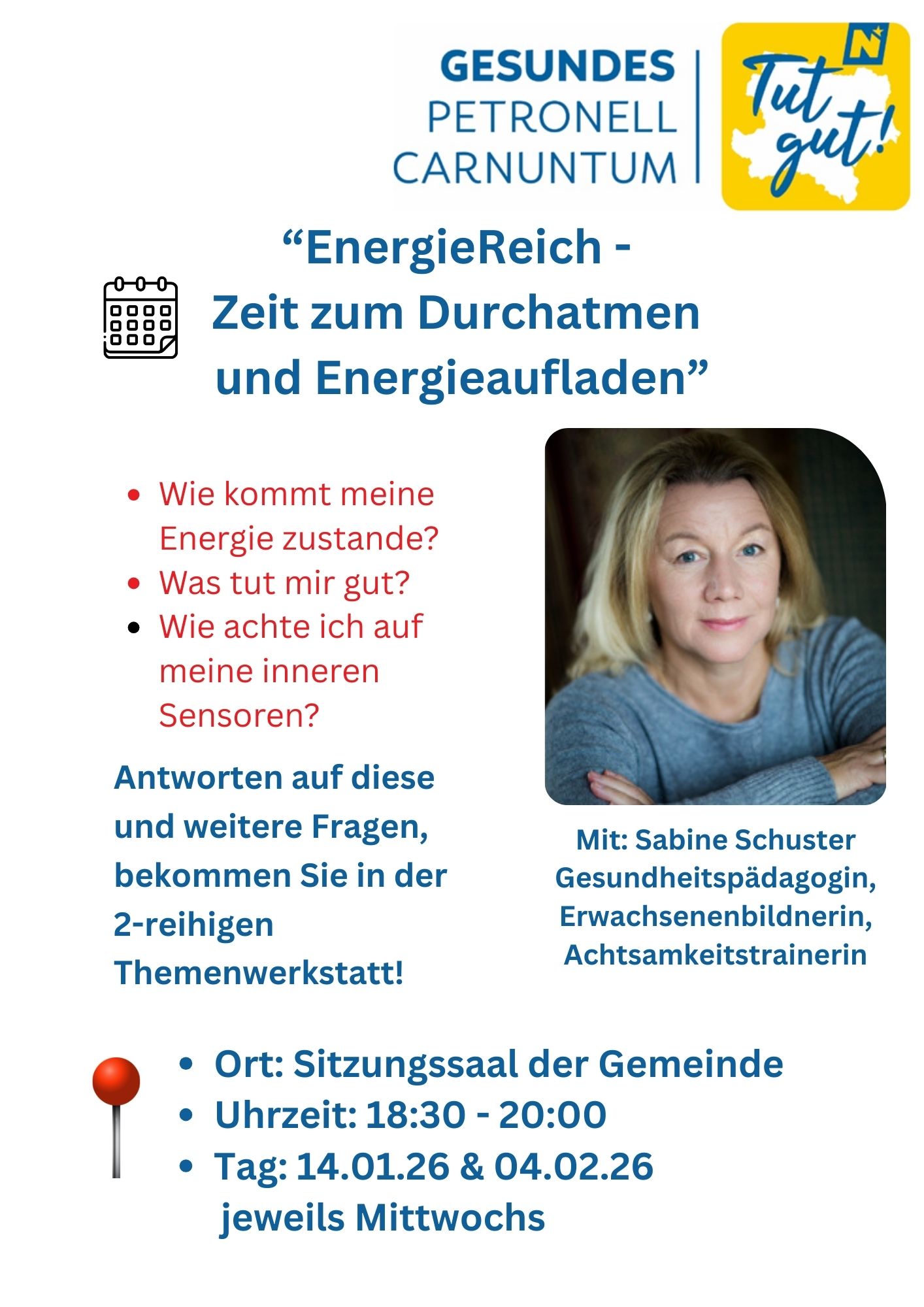 Mi, 14. Jänner 2026 um 18.30 - 20:00 Uhr - Gesunde Gemeinde Petronell Carnuntum